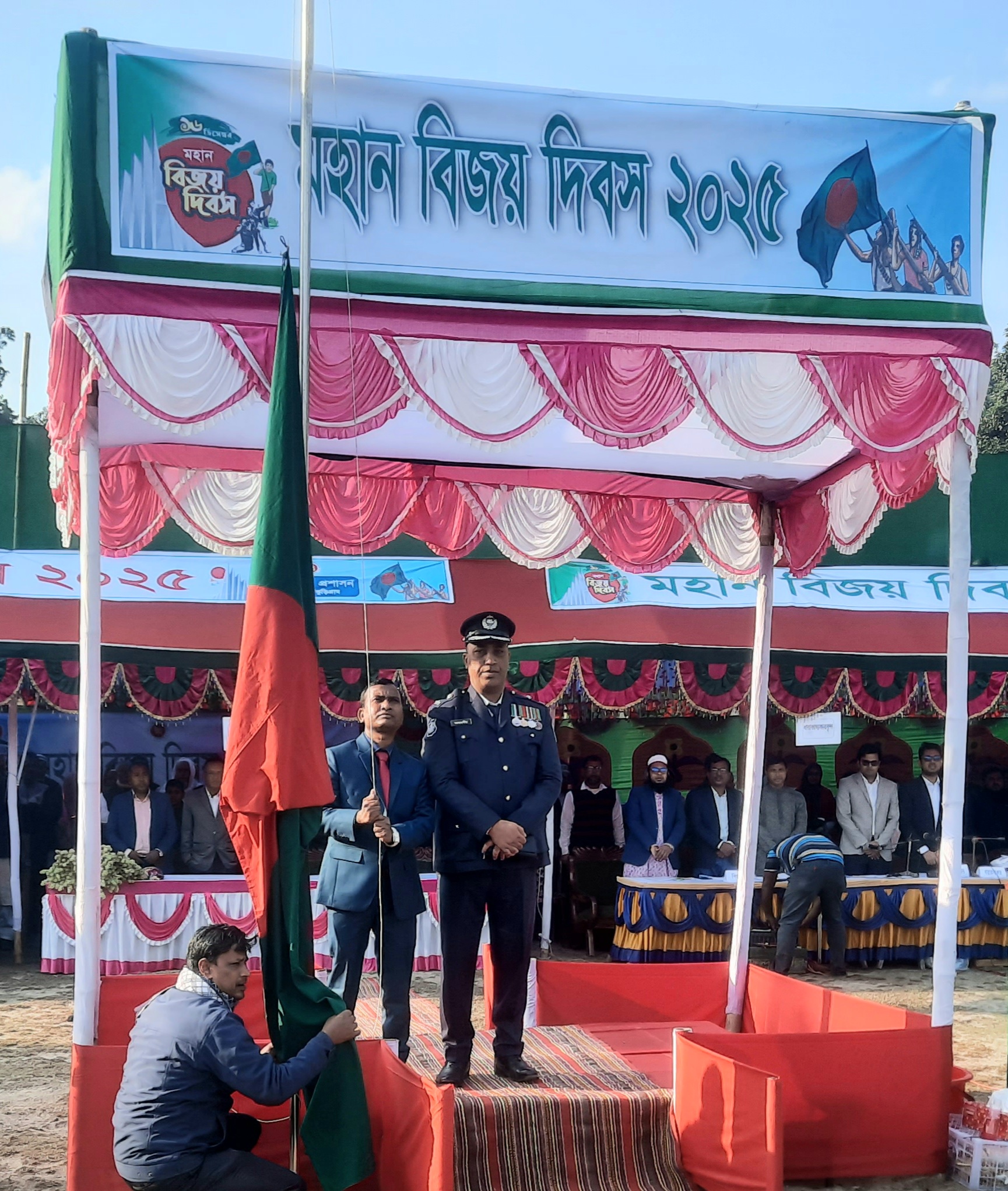সকাল ৮টায় উপজেলা প্রশাসন আয়োজিত কেন্দ্রিয় কর্মসূচী হিসেবে উপজেলা পরিষদ মুক্তমঞ্চে জাতীয় পতাকা উত্তোলন