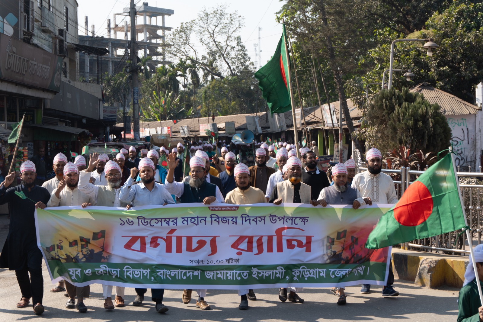 কুড়িগ্রাম জেলা জামায়াতের যুব ও ক্রীড়া বিভাগের উদ্যোগে মহান বিজয় দিবস উপলক্ষে এক বর্ণাঢ্য র্যালির আয়োজন করা হয়। মঙ্গলবার সকাল ১০ টায় জেলা জামায়াতের চামড়ার গোলা কার্যালয় থেকে একটি র্যালি বের হয়ে শহরের প্রধান প্রধান সড়ক প্রদক্ষিণ করে।