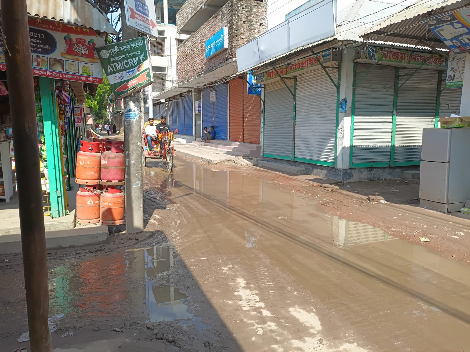 চরভদ্রাসন উপজেলার গার্লস স্কুল সড়কের চার দিন ধরে জলাবদ্ধতায় জনদুর্ভোগ চরমে