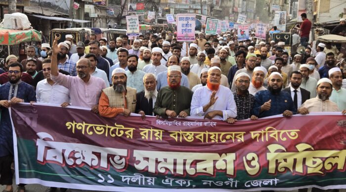 নওগাঁয় ১১ দলের বিক্ষোভ মিছিল ও সমাবেশ অনুষ্ঠিত