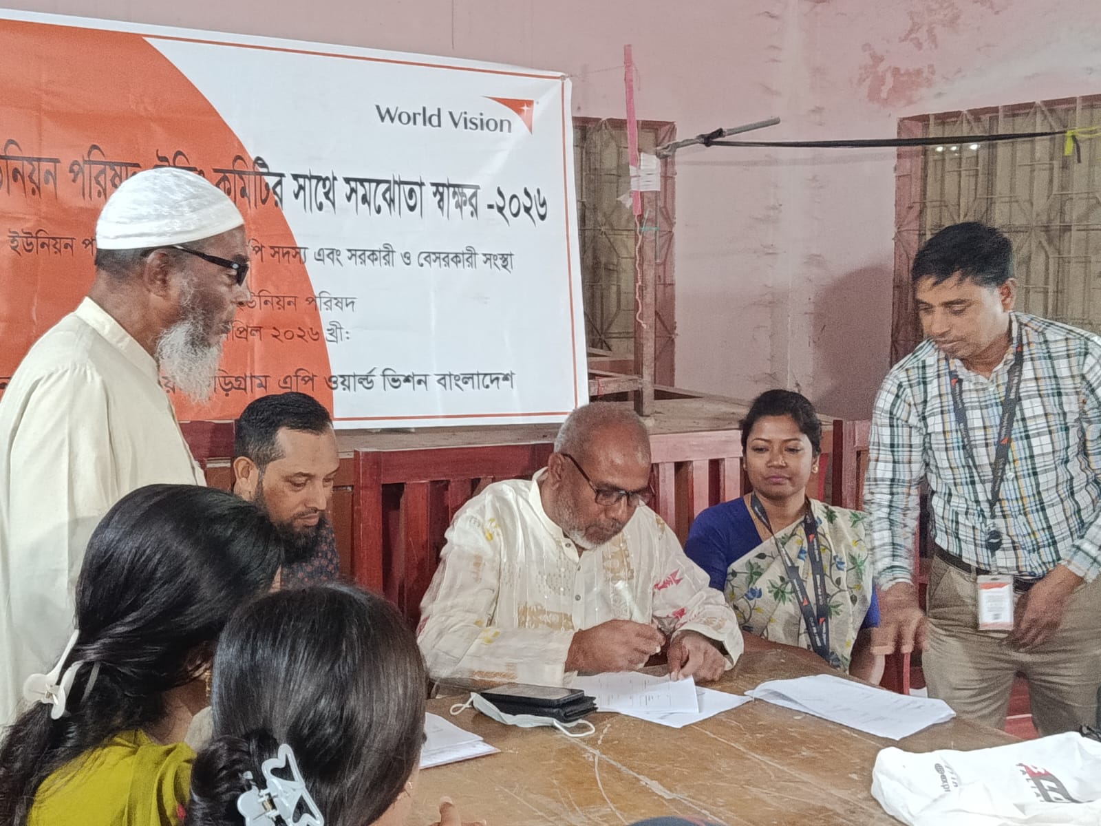কুড়িগ্রাম সদর উপজেলার ২নং হলোখানা ইউনিয়ন পরিষদের ষ্টেন্ডিং কমিটি সমূহ সাথে ওয়ার্ল্ড ভিশনের সমঝোতা চুক্তি স্বাক্ষর-২০২৬ অনুষ্ঠিত হয়েছে।